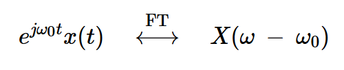 现在我们知道希尔伯特变换是如何改变输入频谱的,让我们更好地理解相位调制器的操作。为此,我们需要复习傅里叶变换的一个重要性质。它被称为移位属性,它指出将时域信号乘以复指数可以得到以下结果: