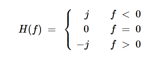 Hilbert变换是相位法的核心。正如我们在上一篇文章中所了解到的,它对应于具有以下频率响应的线性滤波器: